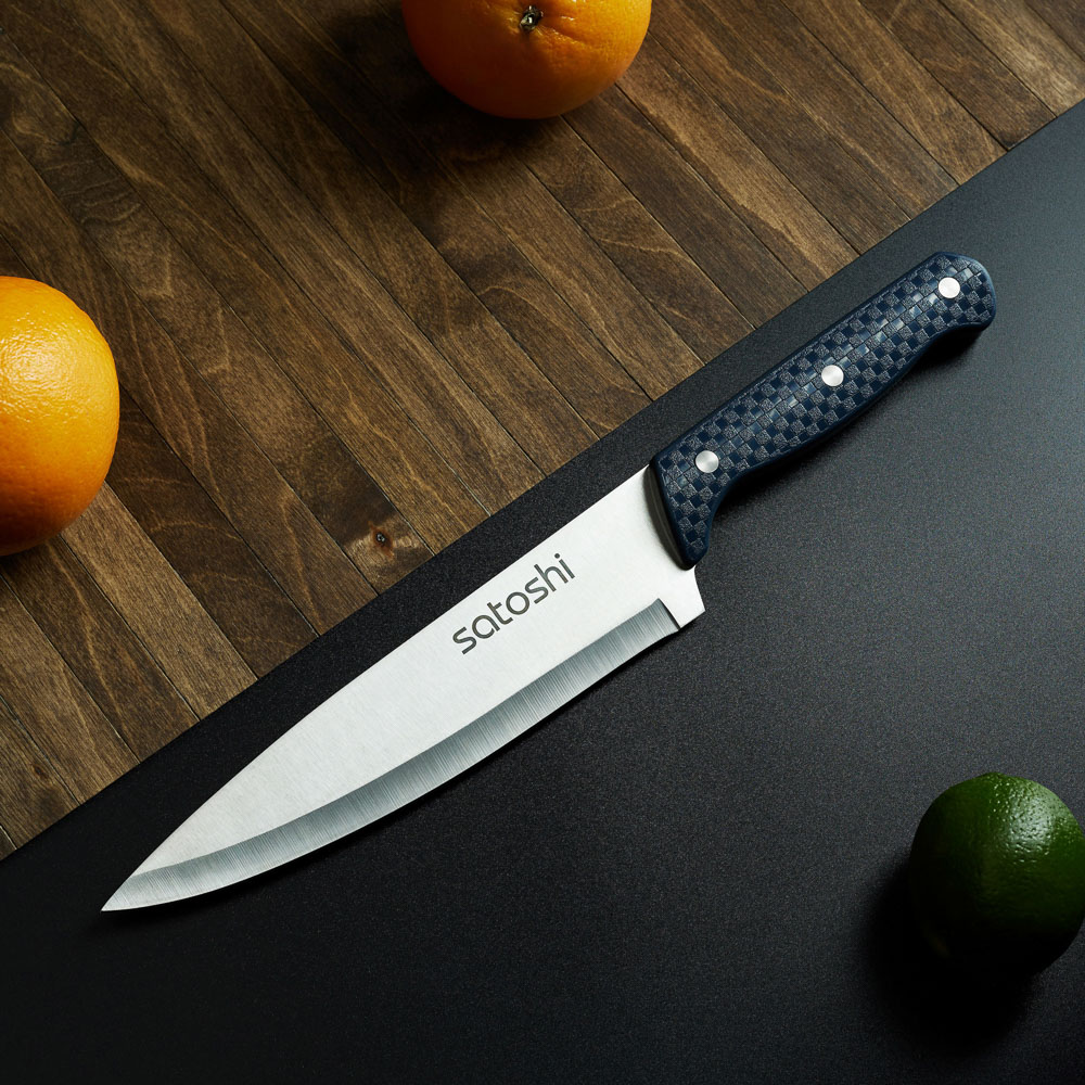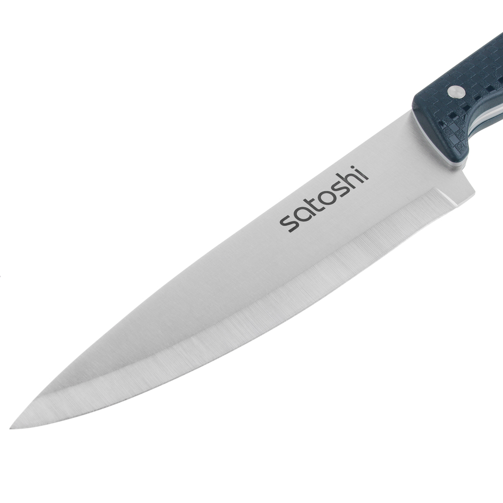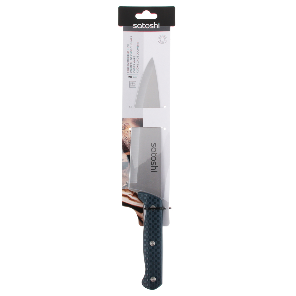 Нож кухонный шеф с лезвием из нержавеющей стали станет вашим главным помощником на кухне. Имеет эргономичную рукоять с покрытием Soft-Touch, благодаря чему изделие не выскальзывает из рук и не вызывает усталости даже при длительной работе по нарезке. Острое лезвие с легкостью разрезает овощи, фрукты, мясные деликатесы и другие продукты на тонкие ломтики и позволяет с комфортом производить шинковку в шефской технике. Изделие долго держит заточку, не боится длительного контакта с кислотами, легко моется. Имеет строгий стильный дизайн.