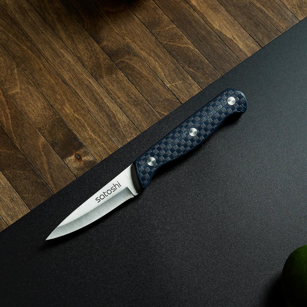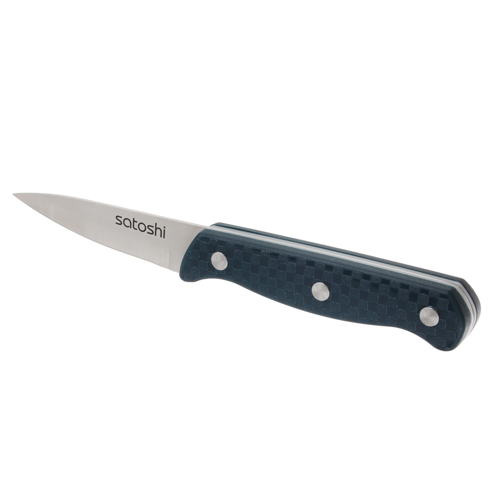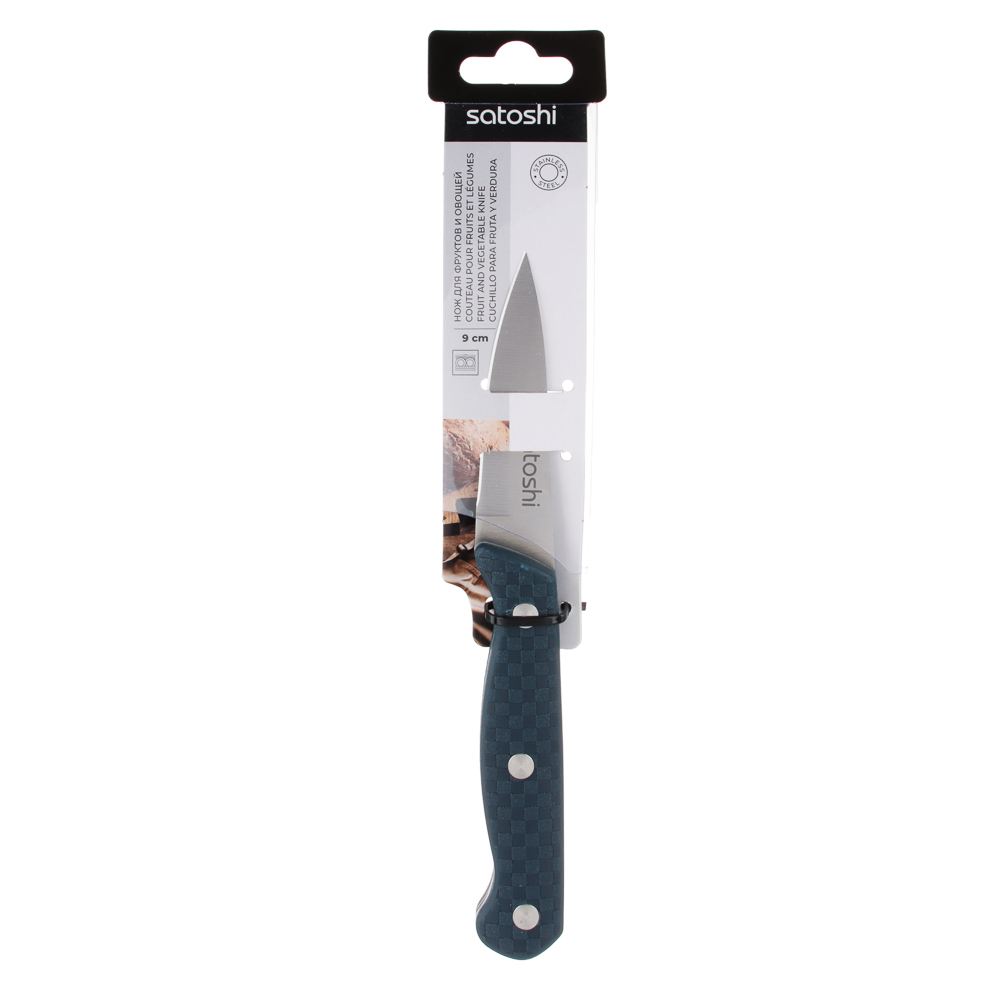 Нож кухонный овощной SATOSHI «Ривьера» 9 см из нержавеющей стали – незаменимый инструмент на каждой кухне. Маленький нож удобен для нарезки и чистки овощей и фруктов от кожуры. Рукоять с покрытием софт-тач удобно фиксируется в руке, не выскальзывая в процессе использования. Сталь долго держит заточку, не боится коррозии.