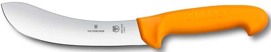 Традиционный мясоразделочный нож с широким изогнутым лезвием и заостренным концом предназначен для снятия шкуры с туши на мясоперерабатывающем производстве или на охоте. Также может использоваться для разделки и обвалки мяса и дичи.