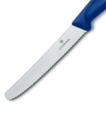 Универсальный кухонный нож Victorinox с серрейторным лезвием и закругленным кончиком для нарезки овощей и колбасы станет незаменимым помощником для любителей приготовить вкусную пищу, но и хорошо покушать.
