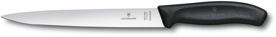 Швейцарский филейный кухонный нож длиной 20 см с пластиковой ручкой черного цвета приятно удивит даже профессионального повара, ведь он обладает рядом преимуществ перед аналогами, обладает продуманной эргономичной формой и отлично справляется задачей филетирования.