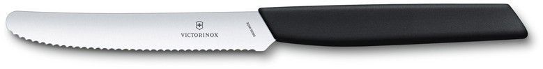 Нож столовый VICTORINOX Swiss Modern, волнистое лезвие из нержавеющей стали 11 см с закруглённым кончиком, рукоять из синтетического материала чёрного цвета.