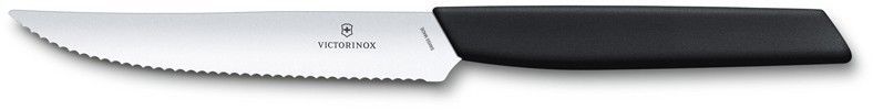 Нож для стейка и пиццы VICTORINOX Swiss Modern, волнистое лезвие 12 см из нержавеющей стали, рукоять из синтетического материала чёрного цвета