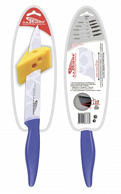 Материал рукояти – высококачественный пищевой пластик с цветными прорезиненными вставками.