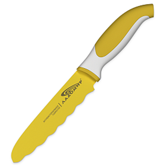 Материал рукояти – высококачественный пищевой пластикс цветными прорезиненными вставками.