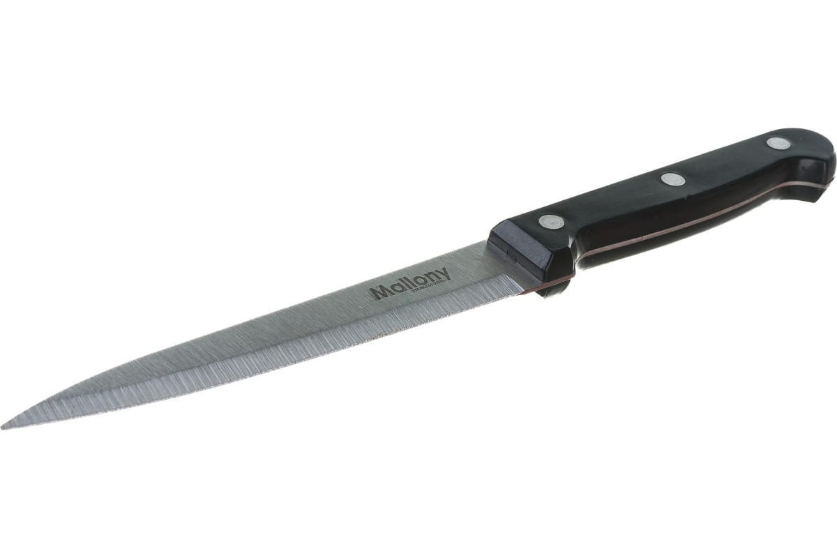 Нож с пластиковой рукояткой подходит для эксплуатации в быту, а также в местах общественного питания.