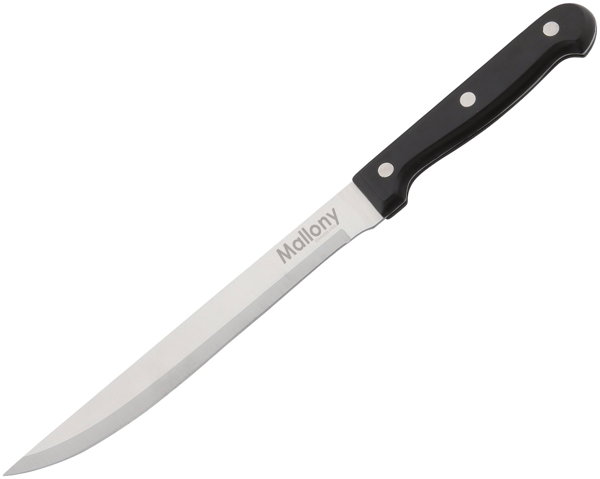 Нож подойдет для эксплуатации в быту на кухне, а также в профессиональных целях в местах общественного питания. Данная модель имеет стильный дизайн и прочную рукоять.