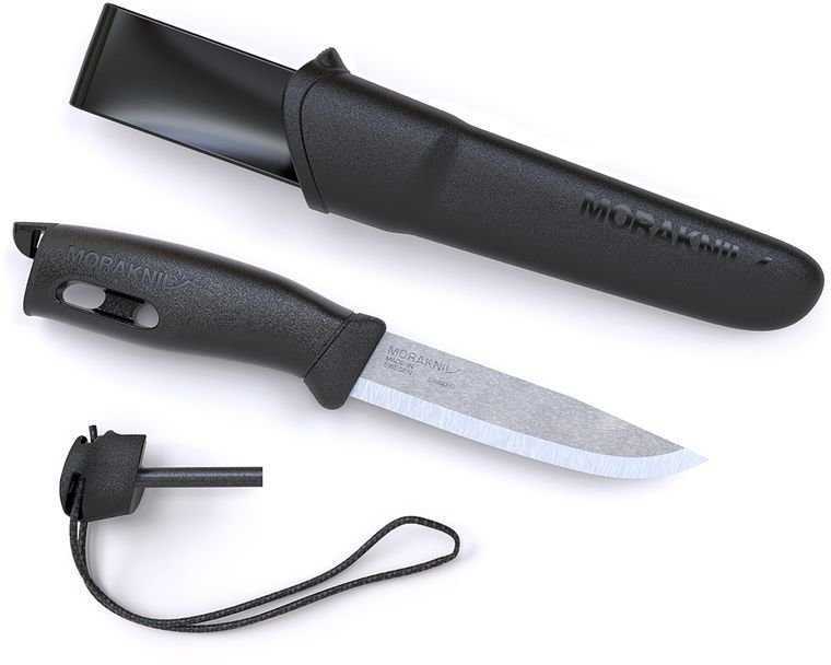 Особенности: Пластиковые ножны с поясной петлей. Огниво фиксируется в рукояти. Светоотражающий паракордный шнур 475 мм