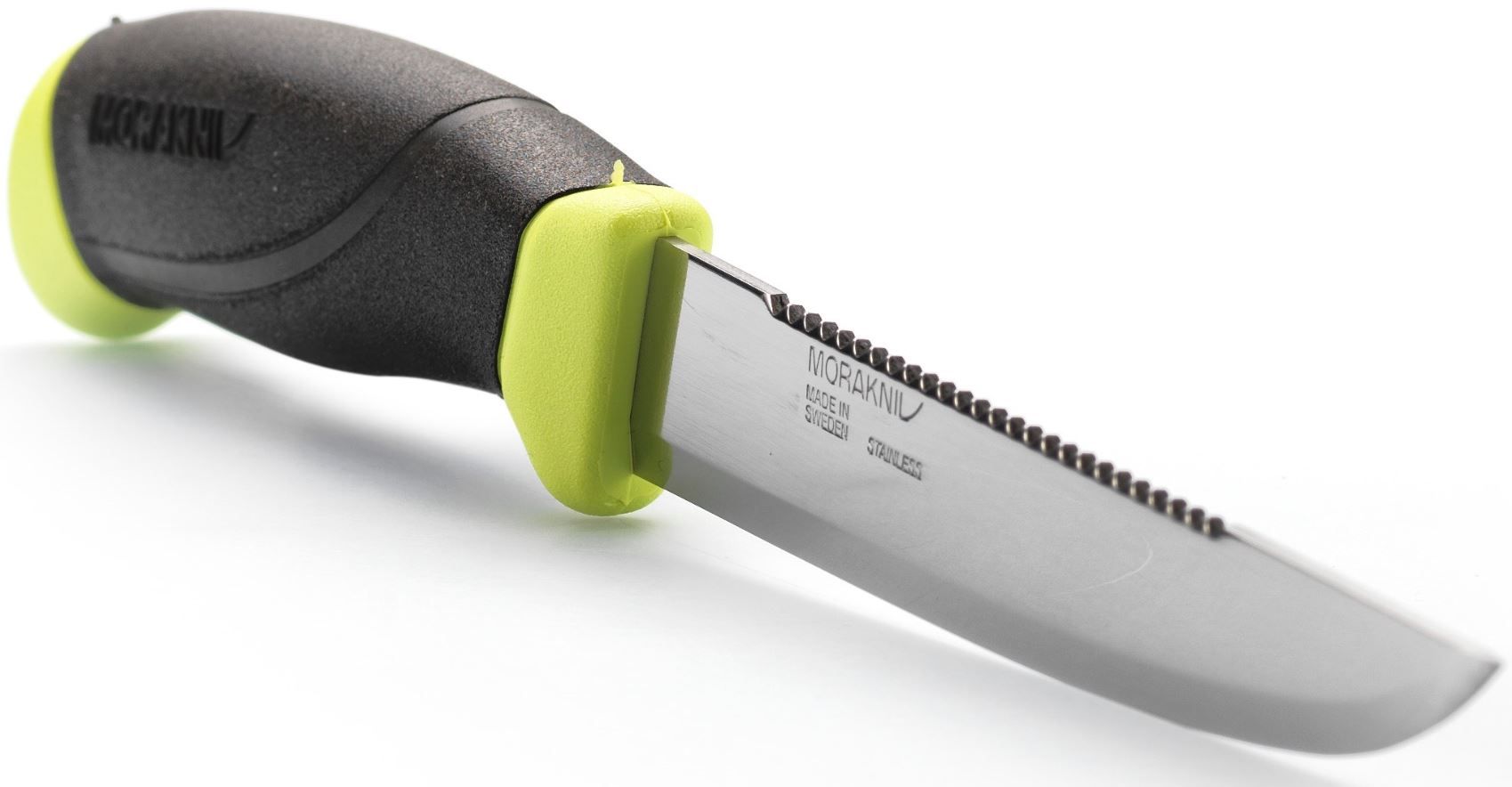 Особенности: лезвие из стали Sandvik 12C27; удобная рукоять из прорезиненного пластика; клинок специальной формы с толщиной в обухе 2 мм; длина ножа – 265 мм, длина лезвия – 150 мм. вес – 115 грамм