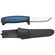 Особенности нержавеющая сталь с твердостью 56-58 HRC; рукоятка из прорезиненного пластика черного цвета с вставкой синего цвета; длина ножа – 206 мм, длина лезвия – 91 мм. толщина лезвия в обухе – 2 мм; вес – 115 грамм.
