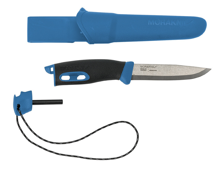 Особенности: Пластиковые ножны с поясной петлей. Огниво фиксируется в рукояти. Светоотражающий паракордный шнур 475 мм