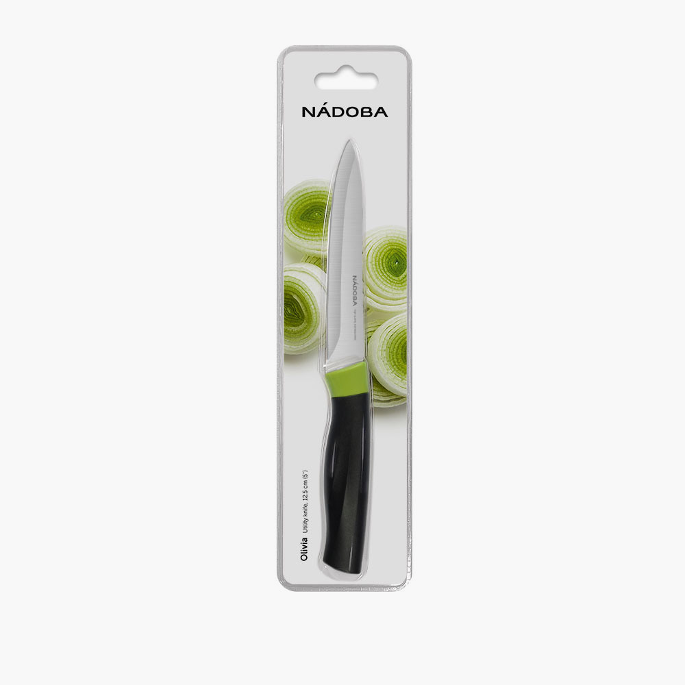 Ножи серии Olivia изготовлены из высококачественной нержавеющей стали, их лезвия остаются острыми долгое время. Эргономичные ручки ножей выполнены из высокопрочного пластика, устойчивого к механическим повреждениям. Серия Olivia включает также необходимые кухонные инструменты и аксессуары: точилку для ножей и ножниц, универсальный блок для хранения ножей и разделочную доску.