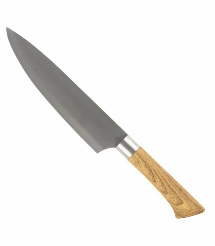 Поварской нож с пластиковой рукояткой под дерево 20 см предназначен для нарезки и очистки продуктов.