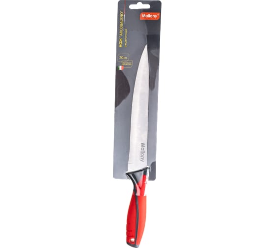 Нож с прорезиненной рукояткой разделочный, 20 см выполнен из прочной стали. Толщина клинка составляет 1.5 мм.