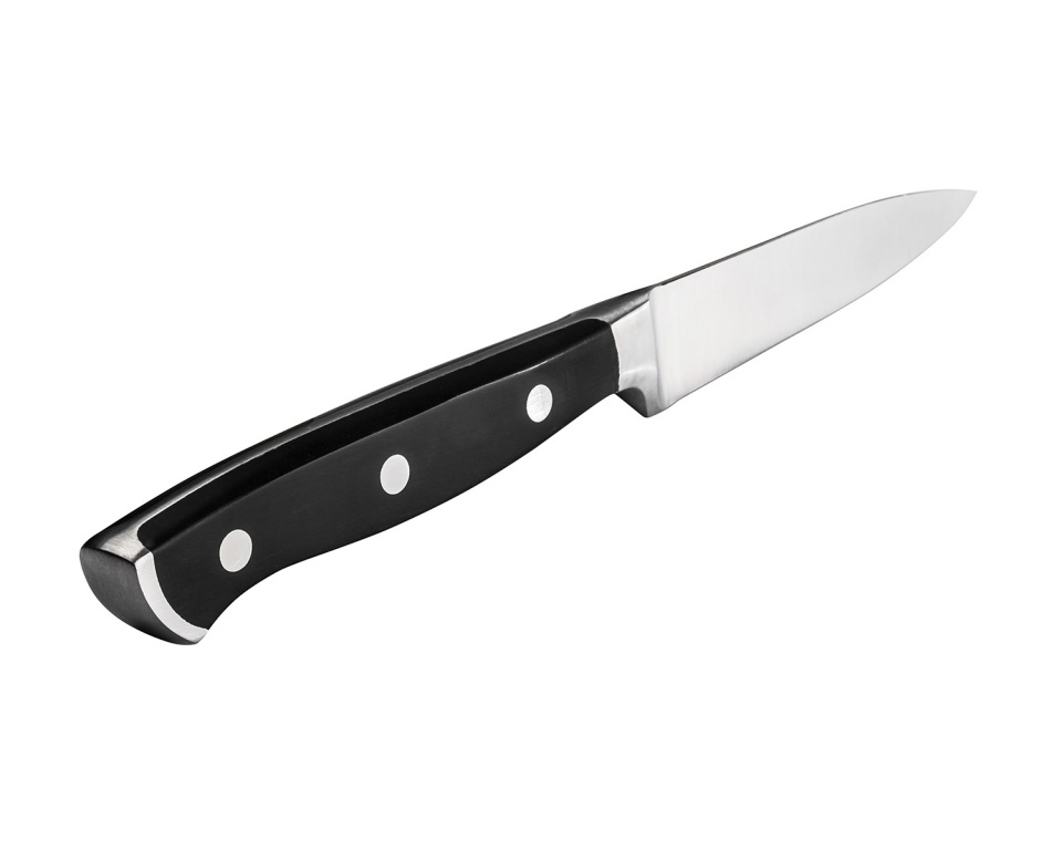 За счёт короткого лезвия длиной 9 см нож будет особенно удобен для чистки и нарезки овощей и фруктов. С его помощью вы аккуратно и тонко снимете кожицу с картофеля, моркови, кабачков, яблок.