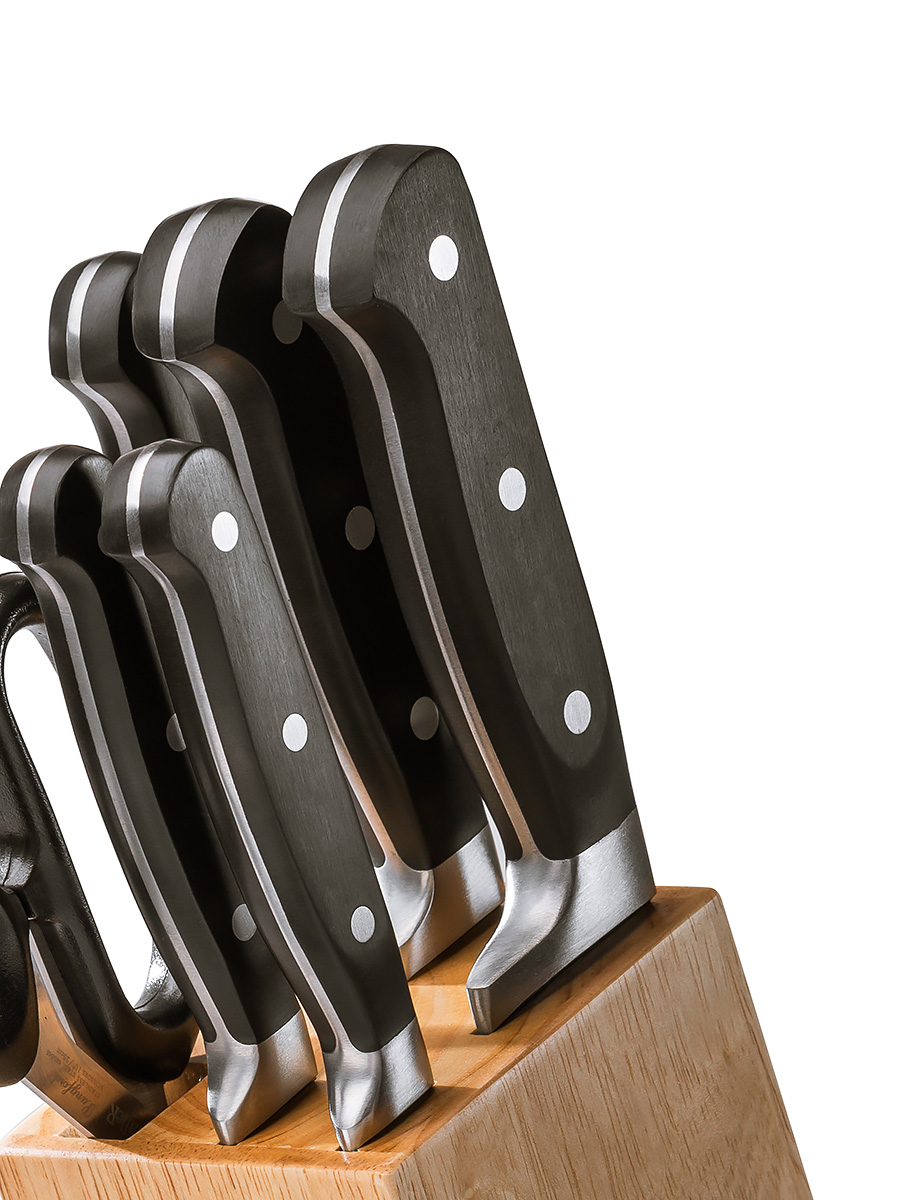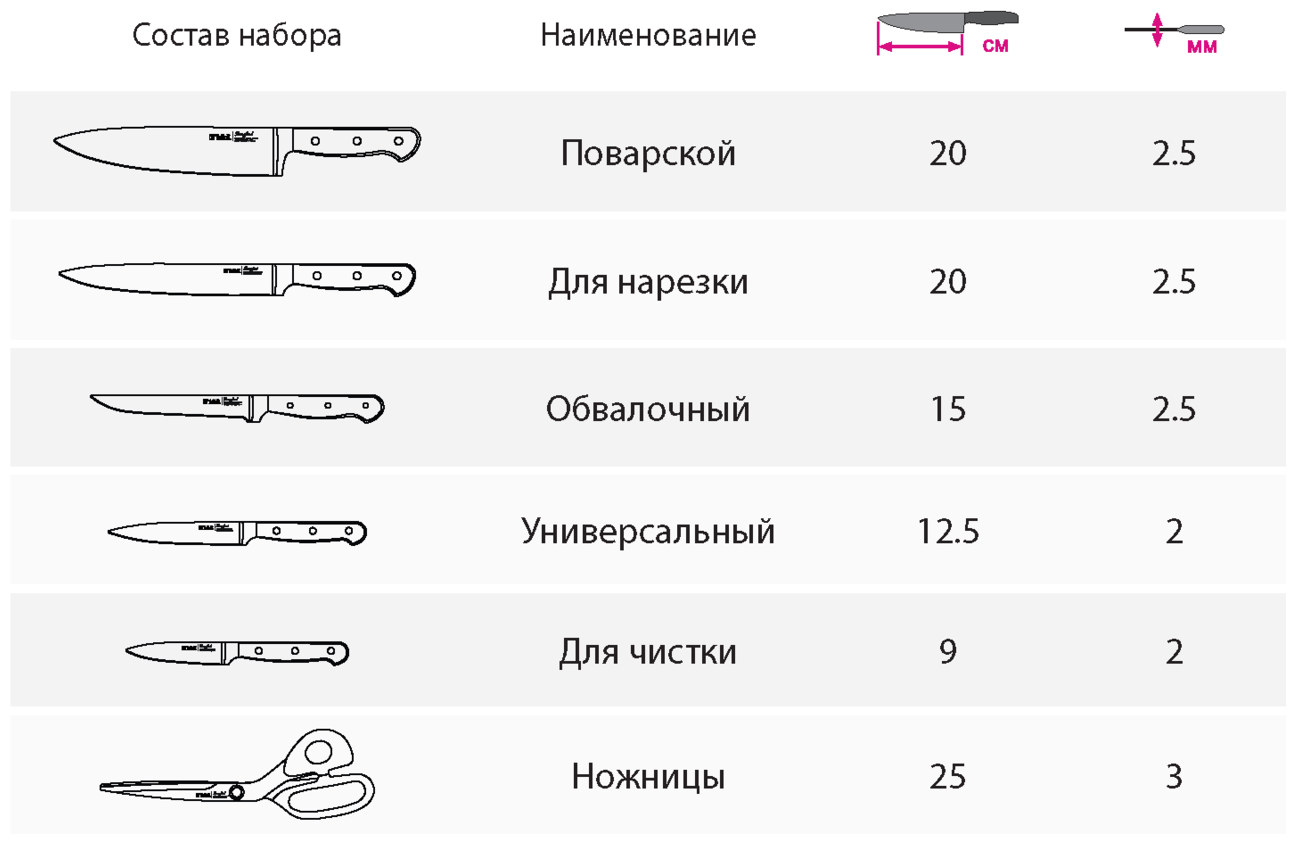 Вы получите нож для чистки овощей, для нарезки, обвалочный, поварской и универсальный, что позволит решать самые разные кулинарные задачи. Клинки выполнены из высококачественной углеродистой стали AISI 420S45 – они не подвержены коррозии, обладают высокой прочностью и долго удерживают заточку.