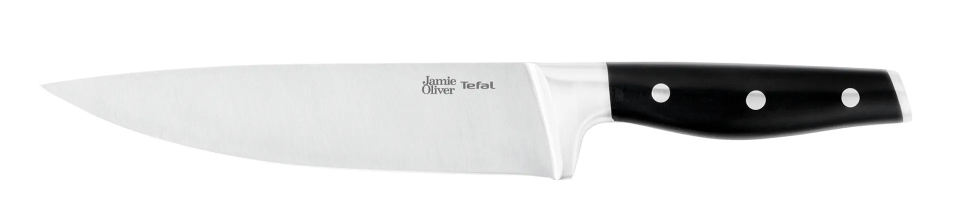 Ручка ножа Tefal Jamie Oliver сделана из ударопрочного пластика.