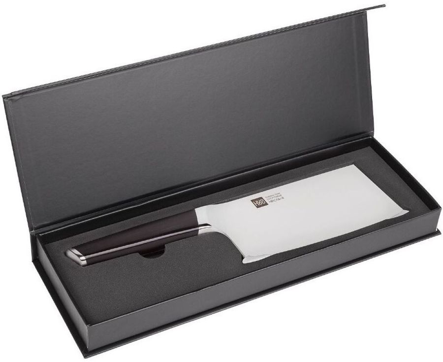 Нож Huo Hou является универсальным азиатским тесаком, который подходит для мяса, рыбы, твердых овощей. Лезвия выполнены из прочной высоколегированной нержавеющей стали. Тесак имеет привлекательный дизайн, эргономичную ручку из черного дерева и трехслойное строение стали.