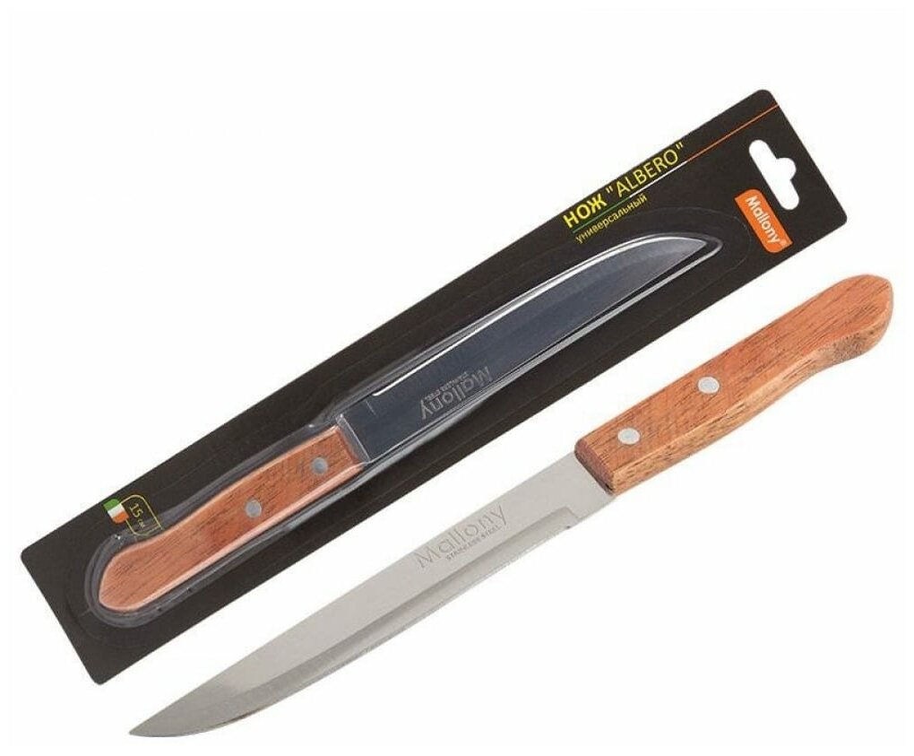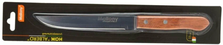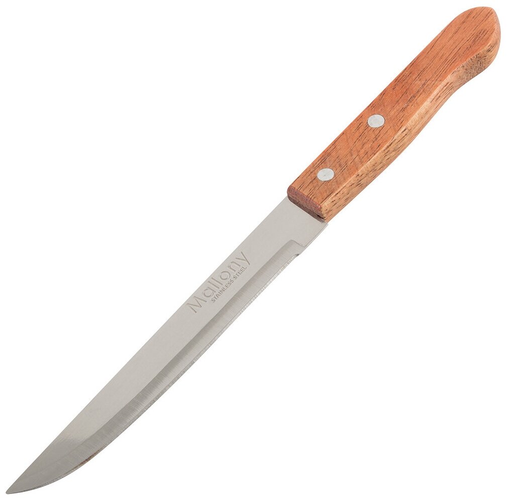 Нож с деревянной рукояткой подойдет для эксплуатации в быту на кухне, а также в местах общественного питания.