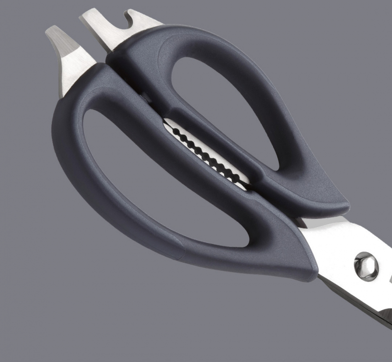 Многофункциональные Кухонные Ножницы без труда справятся сразу с множеством задач на кухне и позволят заменить сразу несколько кухонных предметов. Ножницы изготовлены из нержавеющей стали с высокой прочностью, что обеспечивает их устойчивость к внешним повреждениям и долгий срок службы. Ручки ножниц создаются по особой технологии двойной отливки из твердых и мягких материалов, которые являются нескользящими и прочными.