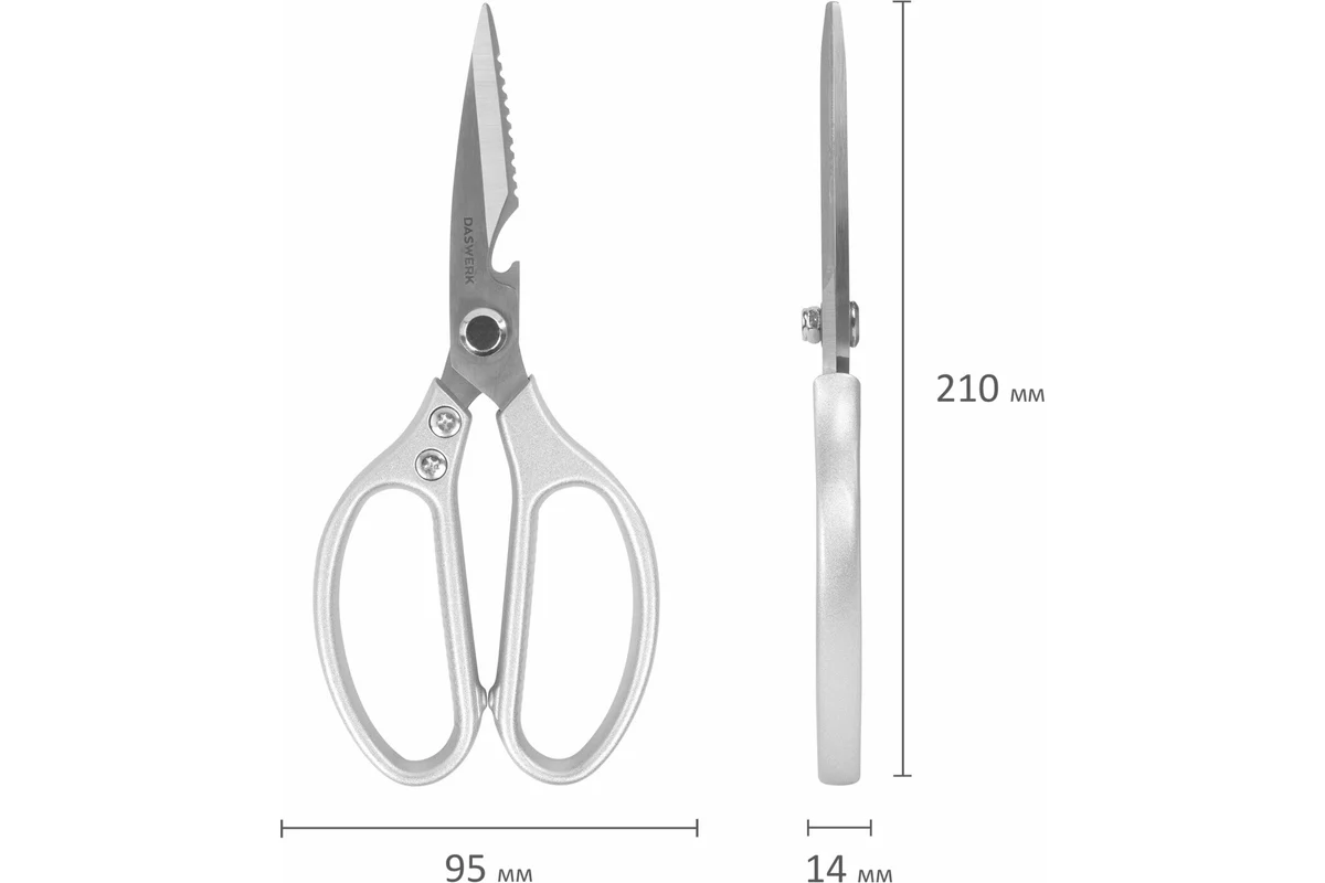 Кухонные ножницы DASWERK, длиной 210 мм, станут незаменимым аксессуаром для кухни благодаря своей универсальности и прочности.