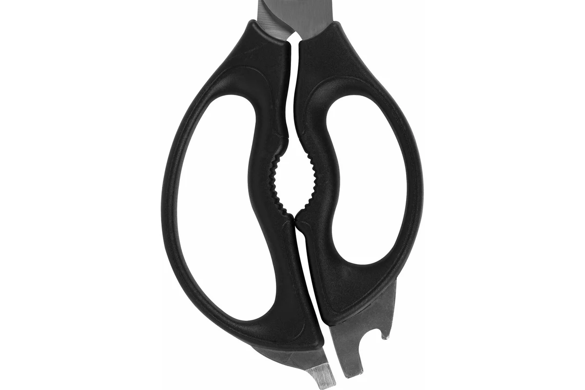 Их функциональность включает орехокол, открывашку для бутылок, зазубренное ребро для чистки рыбы, овощечистку и даже отвертку. Разборная конструкция упрощает уход за ножницами, что делает их настоящим мастером на все руки в вашем кухонном арсенале.