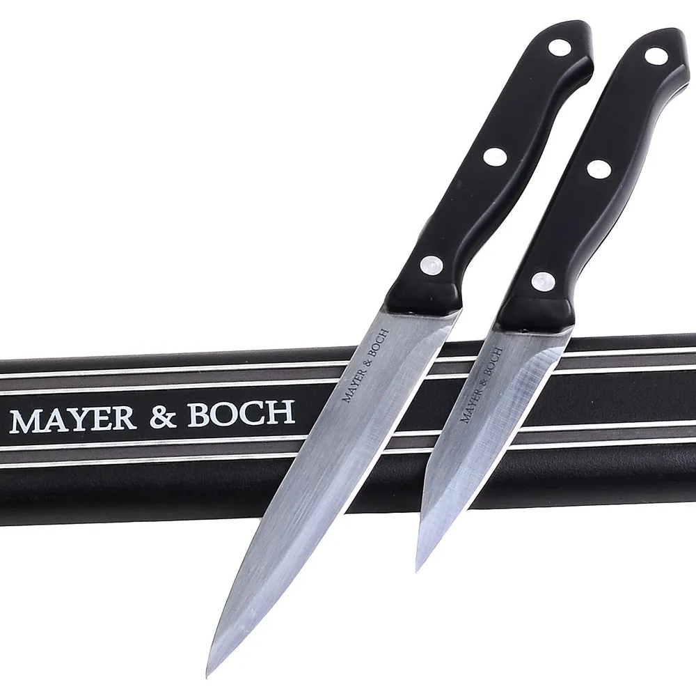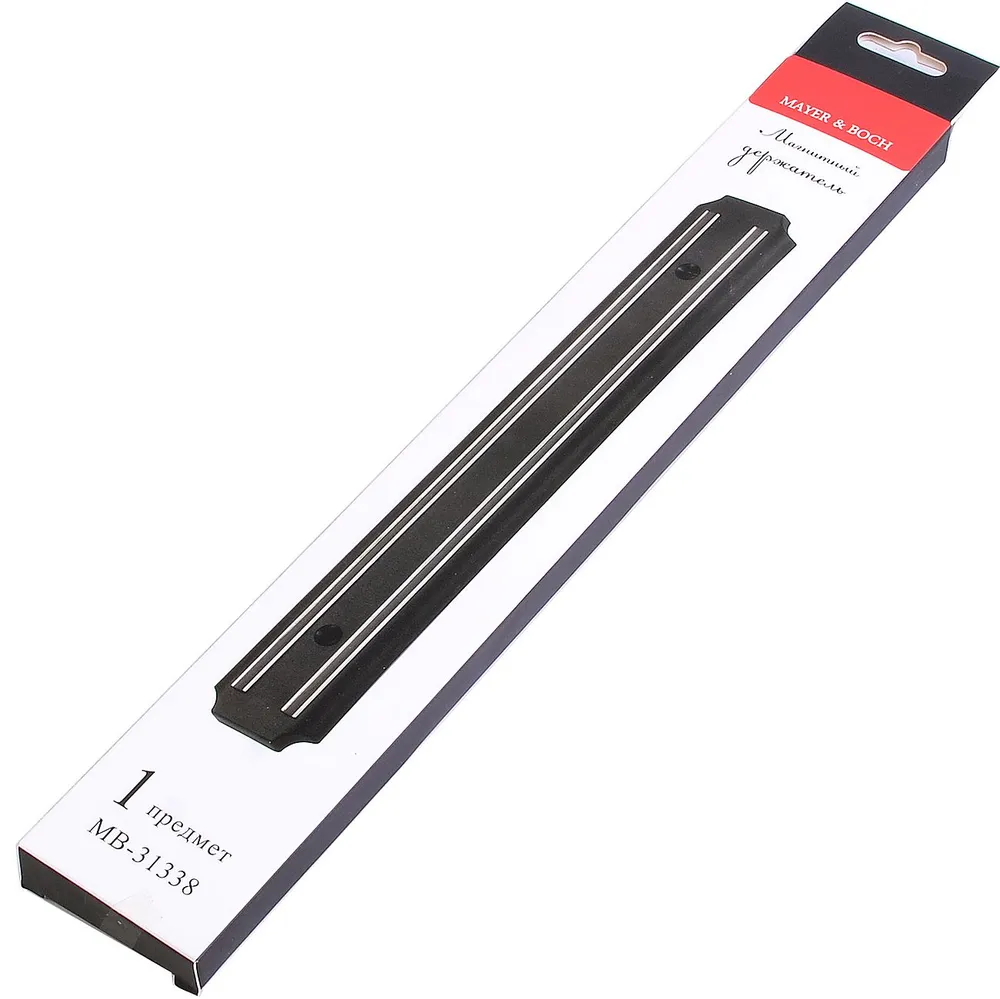 Магнитный держатель MAYER&BOCH - это удобное приспособление, которое непременно пригодится на вашей кухне. Он выполнен из металла и пластика и для удобства крепится к стене при помощи двух шурупов с дюбелями (в комплекте). Магнитный держатель предохранит ваш кухонный нож от царапин и контактов с остальными ножами и столовыми приборами. Кухонные ножи всегда будут остры и пригодны для любых нагрузок. Магнитный держатель - это стильный аксессуар для вашей кухни.
