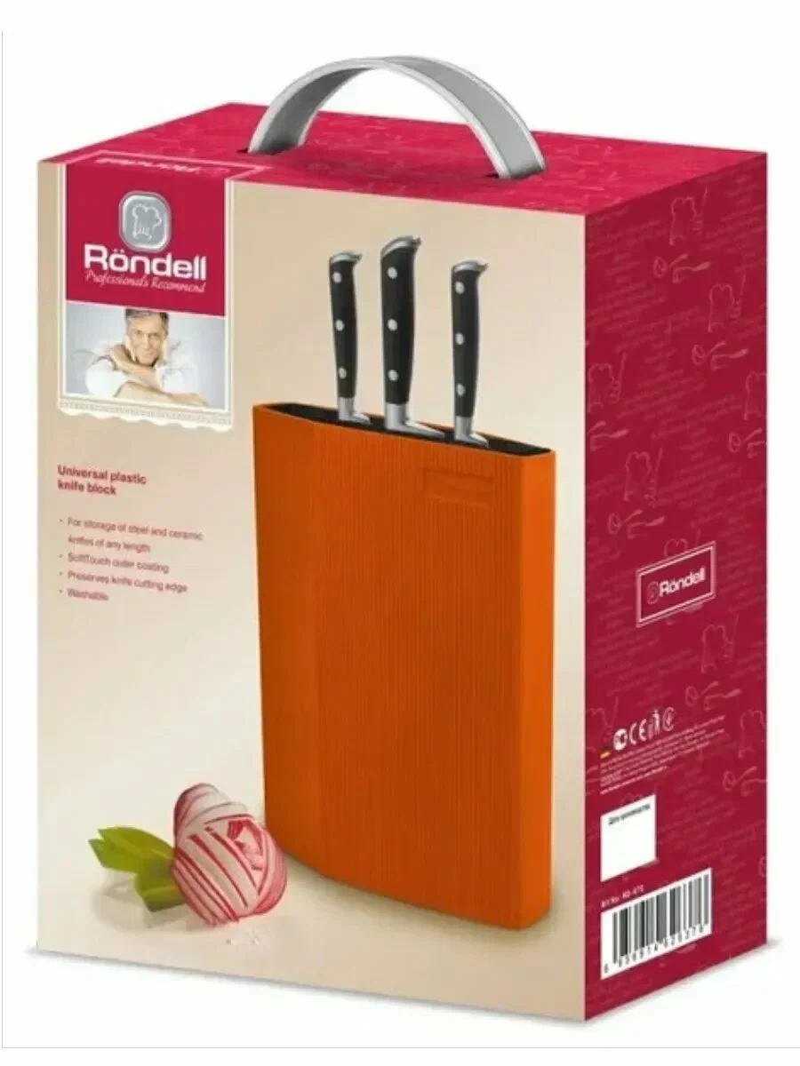 Подставка для ножей Rondell Orange RD-470 оранжевого цвета — универсальная подставка для 5–6 ножей или других кухонных аксессуаров.