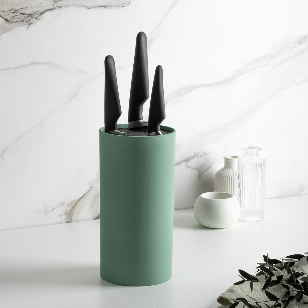 Подбираете стильные решения для вашей кухни? Круглая подставка для ножей SATOSHI из полипропилена удачно впишется в интерьер кухни и позволит компактно разместить сразу несколько кухонных ножей. Однотонная подставка 11х22 см имеет полипропиленовые разделители, которые превосходно удерживают ножи, а также защищают лезвия от царапин.