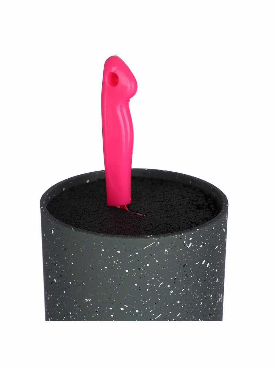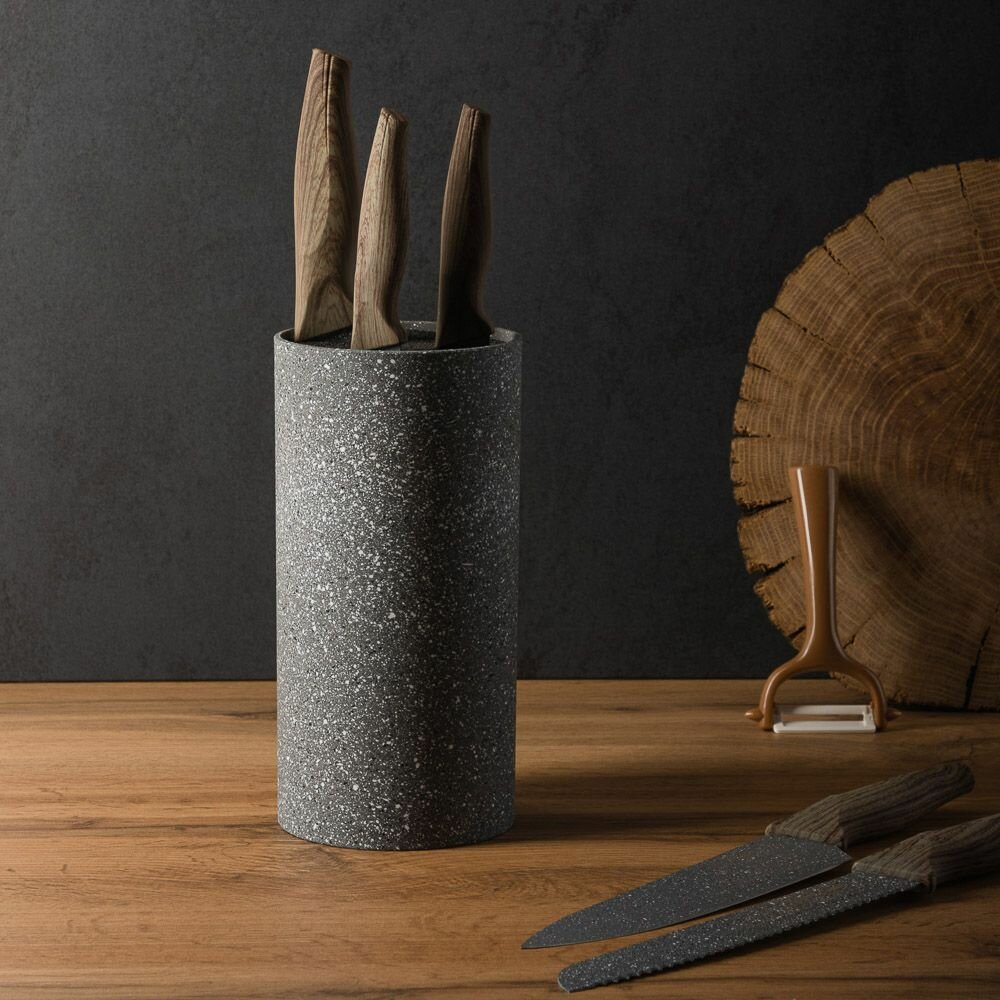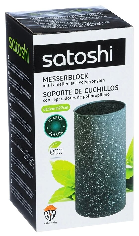 Подставка для ножей с полипропиленовыми разделителями SATOSHI «Алмаз» высотой 22 см и диаметром 11 см цилиндрической формы станет украшением кухни и поможет разместить ножи в самом удобном месте таким образом, чтобы они всегда были под рукой. Изделие имеет стильный дизайн с оригинальной фактурой «под камень», смотрится привлекательно, дополняя интерьер кухни. Подставка устойчивая и надежная. В нее удобно помещать ножи и извлекать их одним движением. Полипропиленовые разделители не царапают лезвия и не снижают остроту заточки.