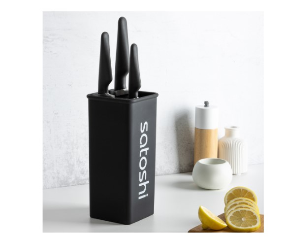 Квадратная подставка для ножей SATOSHI размером 10x10x22,5 см – это компактный аксессуар для кухни, предназначенный для хранения ножей. Обеспечивает быстрый доступ к ножам и их отличную фиксацию внутри подставки. Подходит для ножей разной длины. Полипропиленовые разделители не царапают клинок, а лезвия не теряют заточку. Устойчивое основание исключает случайное опрокидывание. Стильный дизайн в черном цвете будет оригинально смотреться в интерьере кухни.
