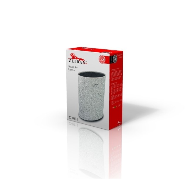 Подставка для ножей с пластиковыми волокнами и декоративным покрытием.