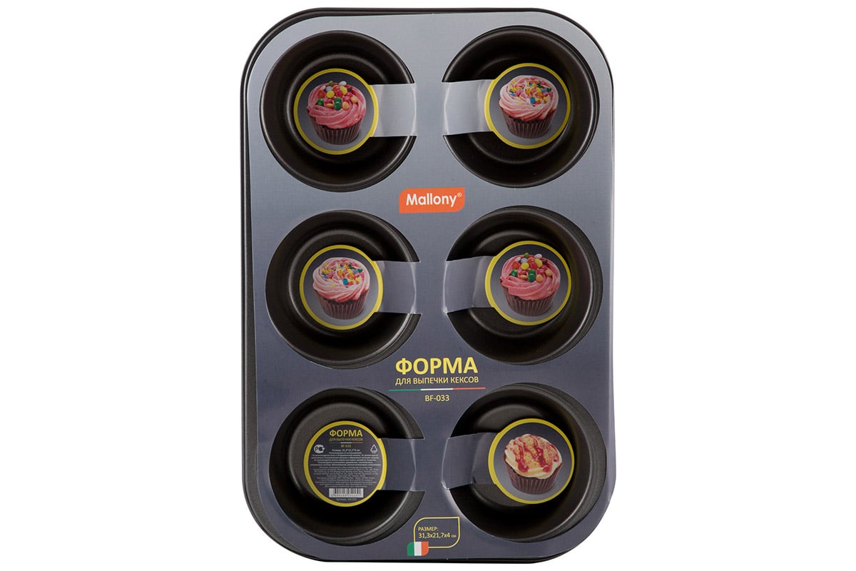 Форма для выпечки кексов Mallony BF-033 6 ячеек в одной форме размер 313x217x4 см 191315 предназначена для бытового использования.