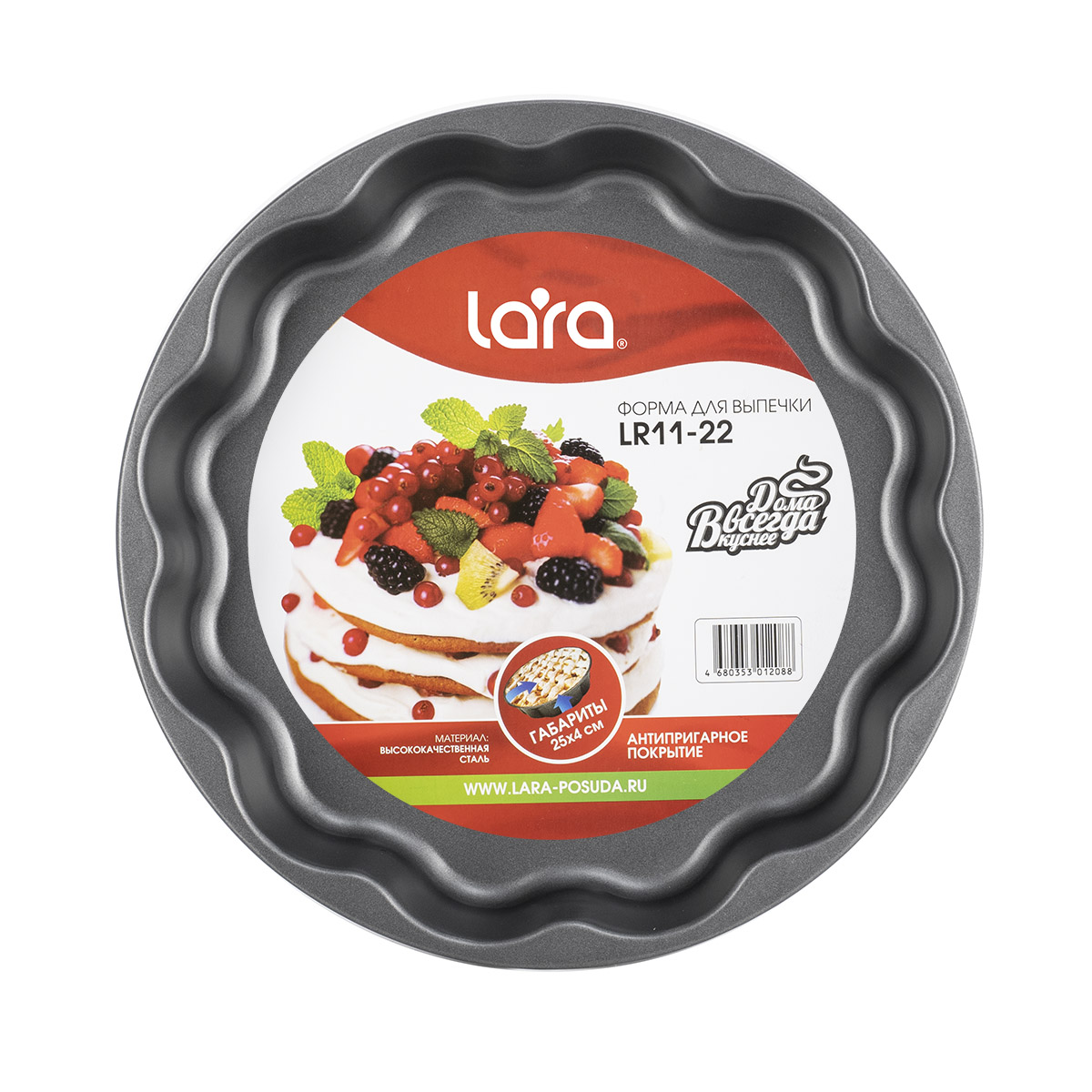 Круглая форма для выпекания LARA с волнистыми краями – это отличный вариант для частого использования. Мы подобрали экологически чистые материалы: прочную углеродистую сталь и прочное антипригарное покрытие, обеспечивающие оптимальное распределение тепла по всей поверхности. Прекрасно подходит для приготовления шарлотки, тыквенного пирога или манчестерского торта, а почему бы и нет. Тесто подрумянится, не пригорит и вы с лёгкостью извлечёте готовый продукт из формы или оставите в ней для хранения в холодильнике. Простой уход с возможностью мыть в посудомоечной машине добавляют плюсов к выбору этого кухонного аксессуара.