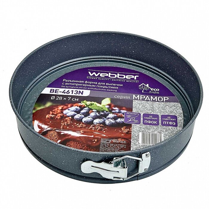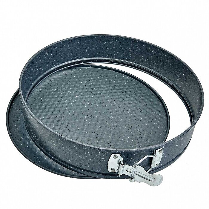 Форма для выпечки разъемная из высокоуглеродистой стали. Она пригодится для выпекания кексов, бисквитов и коржей для торта. Благодаря разборной конструкции изъять готовое изделие из формы можно легко и не боясь его сломать.
