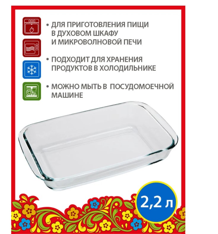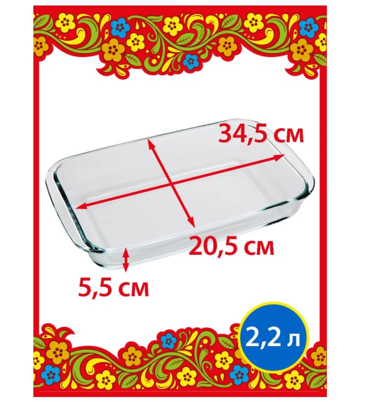 Прямоугольная форма для запекания, 2,2л, ЗАБАВА РК-0015, 34.5 * 20.7*5.2 см. Форма для запекания из высококачественного термостойкого стекла. Обладает впечатляющим полезным объемом: он равен 2.2 л. Этот показатель обеспечивает возможность приготовления большого, объемного блюда.