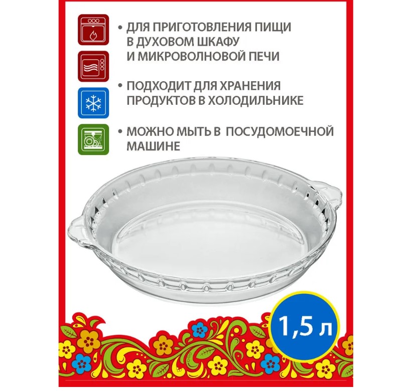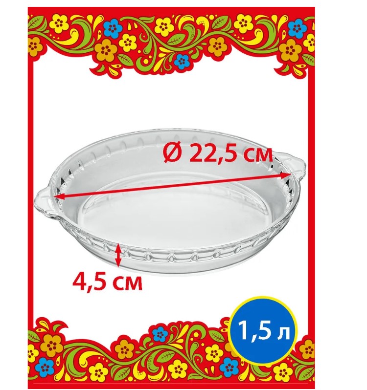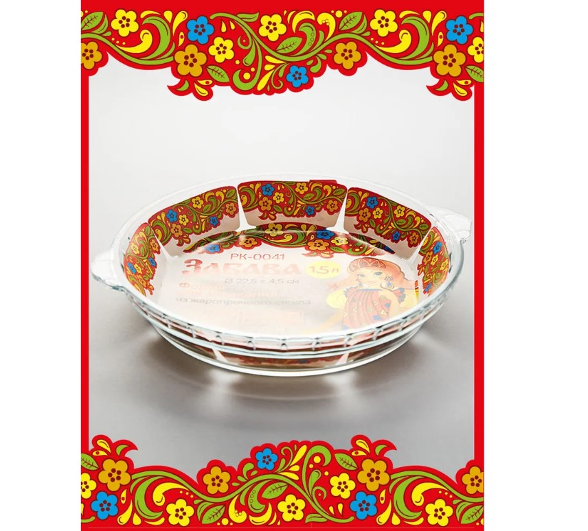 Круглая форма для запекания с ручками, 1,5л, ЗАБАВА РК-0041, 25.4*22.5*4 см. Форма для запекания из высококачественного жаропрочного стекла. Прозрачность формы способствует удобству контроля за процессом использования предмета посуды как в активном режиме, так и в режиме хранения.