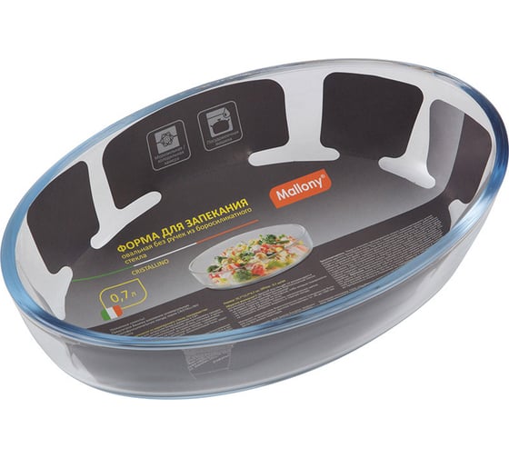 Форма для запекания из боросиликатного стекла Mallony CRISTALLINO 0.7 л, овальной формы 005562 предназначена для приготовления блюд в духовом шкафу, а также для хранения блюда в холодильнике/морозильной камере.