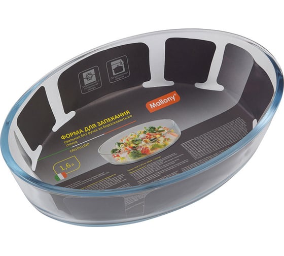 Форма для запекания Mallony CRISTALLINO объем 1.6 л из боросиликатного стекла овальная форма без ручек 005563 предназначена для бытового использования.