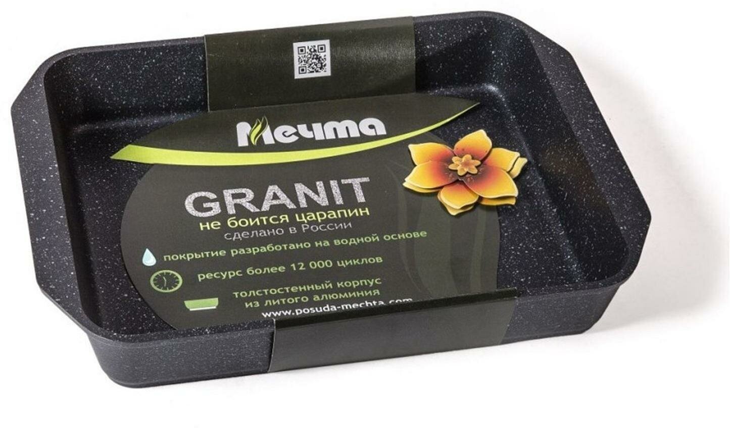 Серия " GRANIT " представляет собой многослойную систему, упроченную кристаллами минералов. Ресурс более 12000 циклов согласно тесту на износостойкость BS 7069:1988. Толщина покрытия до 55 мкр. Антипригарное покрытие премиум класса представляет собой многослойную систему, упроченную кристаллами минералов. Данные частицы выполняют роль армирующего звена, благодаря чему получается мощнейшая монолитная структура, которая многократно повышает прочностные и антипригарные свойства покрытия. Основа противней - толстостенный литой алюминий толщиной до 6 мм.