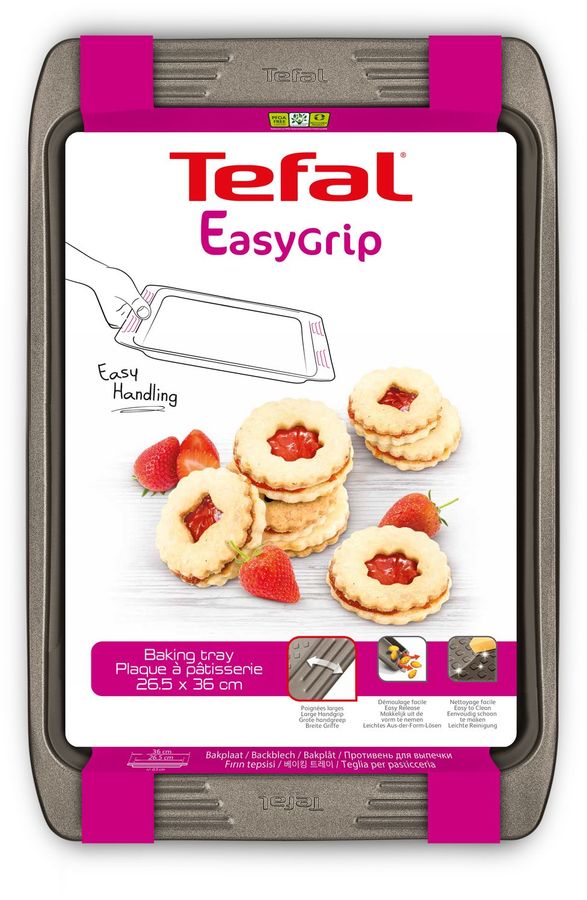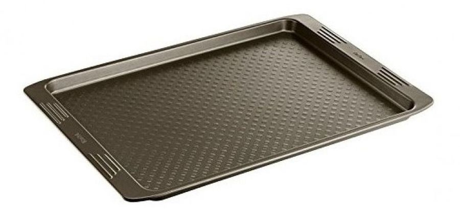 Форма из углеродистой стали с рифленой поверхностью. Большие удобные ручки. Антипригарное покрытие и текстурированное дно позволяют легко извлекать выпечку. Легко чистить после использования.