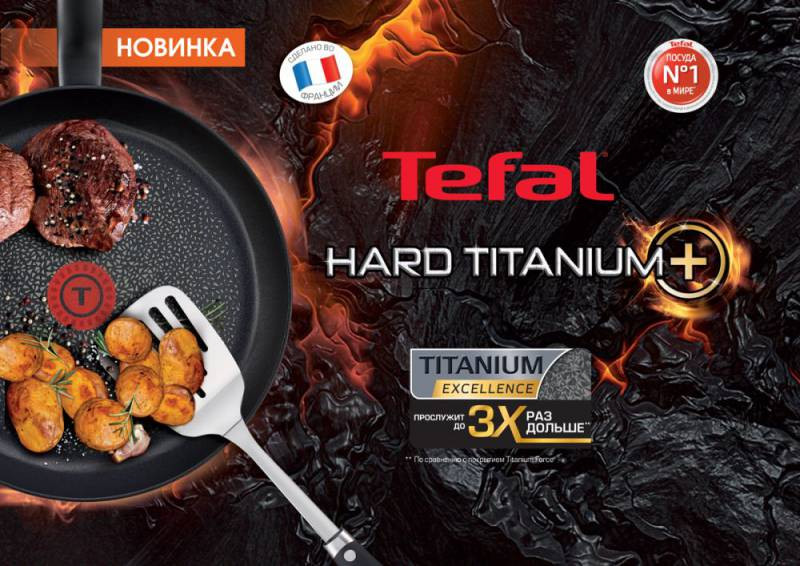 Особенности: Подходит для использования со всеми типами плит, включая индукцию. Внутреннее антипригарное покрытие Titanium Exellence. Можно мыть в посудомоечной машине.