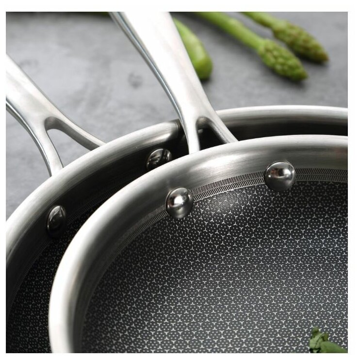 Hi-Tech – это инновации и технологи. Коллекция изготовлена из высококачественной нержавеющей стали 18/10 с антипригарным покрытием ILAG Ultimate, в 10 раз более долговечным, что обеспечивает устойчивость к царапинам при использовании металлических аксессуаров. Благодаря рельефной структуре антипригарное покрытие дольше остается неповрежденным.