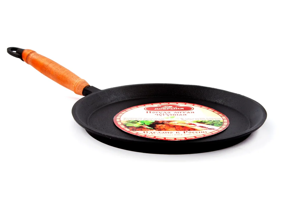 Чугунная сковорода Добрыня DO-3310 идеальна для приготовления блинов. Благодаря уникальной способности чугуна постепенно и равномерно прогреваться и долго держать жар, блины на этой сковороде готовятся быстро, получаются румяными и хорошо прожаренными. Бортики на сковороде низкие, поэтому переворачивать на ней блинчики очень удобно.
