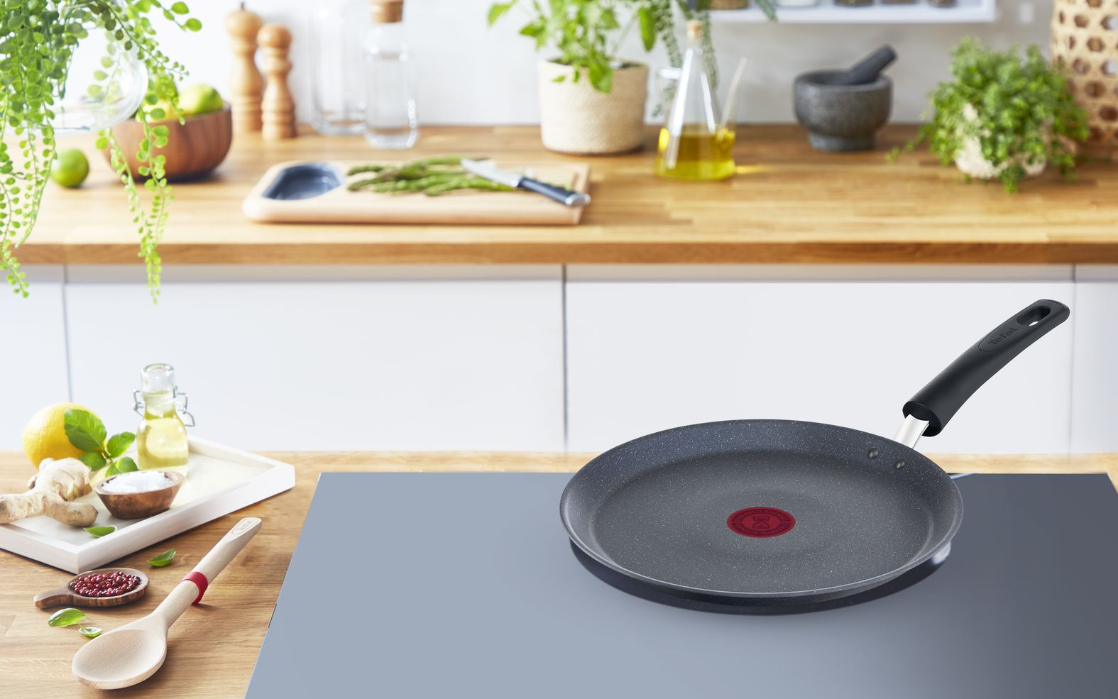 Описание: Сковорода для блинов Natural On оснащена антипригарным покрытием Mineralia+, которое усилено частицами силиката кальция. Технология Thermo-Fusion+ обеспечивает быстрый и равномерный нагрев посуды, а индикатор Thermo-Signal гарантирует приготовление всех ингредиентов при правильной температуре.