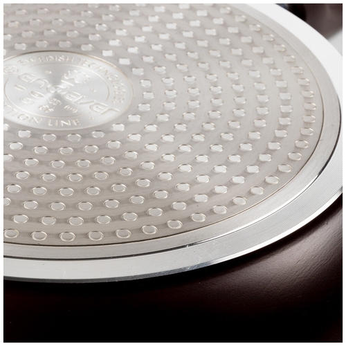 диаметр ферромагнитной вставки - 17,3 см; бакелитовая ручка, подходит для всех видов плит, включая индукционные