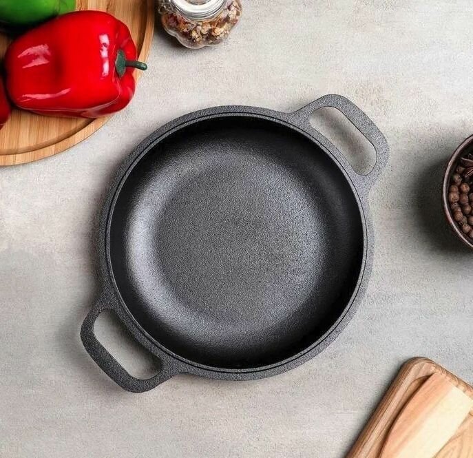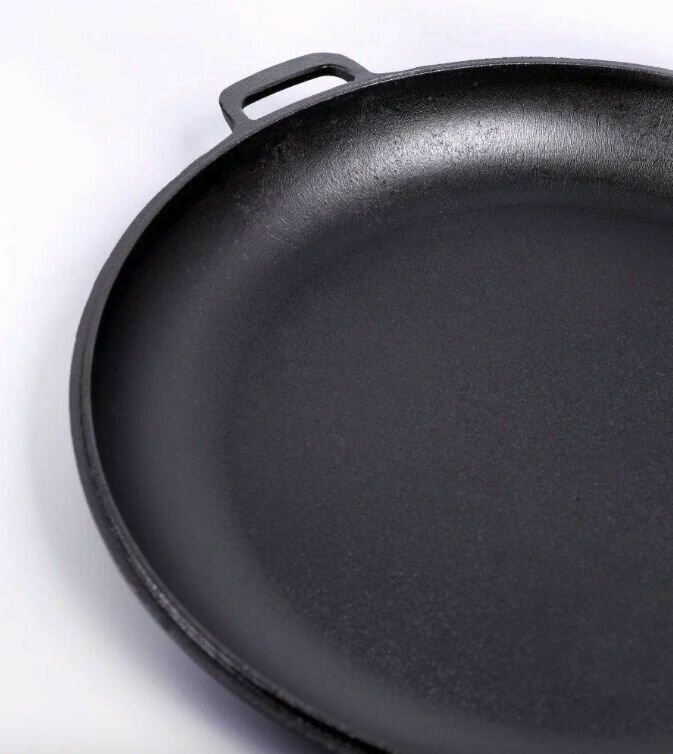 Чугунная сковорода подходит хдля индукционной плиты и для других видов плит, можно использовать в духовке и на открытом огне, на углях.