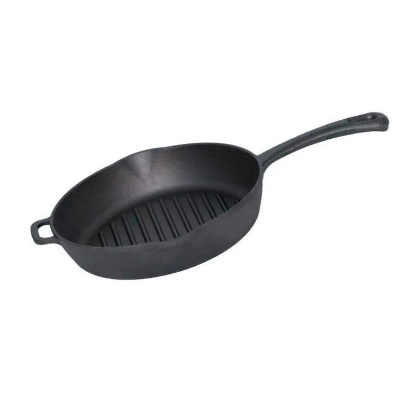 Сковорода-гриль чугунная, литая ручка, 24см.