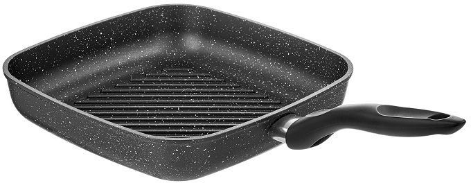 Сковорода-гриль литая с высокими ребрами, толщина дна 4 мм, бортов 2,5 мм, высокие борта. Каменное покрытие-черный гранит. Антипригарное покрытие Quantum2 с двойным усилением армировано смесью частиц высокой прочности и обладает отличной абразивной износоустойчивостью,
