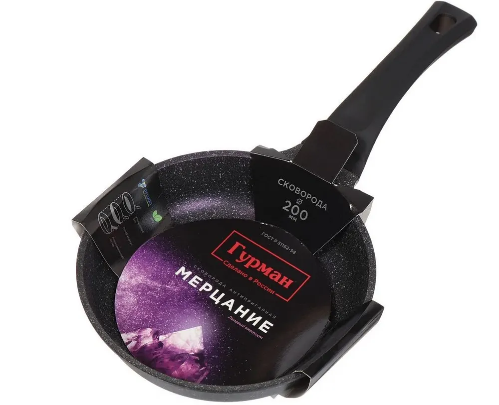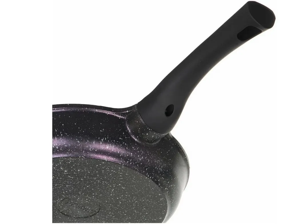 Сковорода выполнена литьем вручную из пищевого алюминия и имеет сверхпрочное семислойное антипригарное покрытие, безопасное для здоровья. Антипригарное покрытие обладает высокой прочностью к истиранию, что увеличивает срок службы сковороды в 5 раз. Форма сковороды обеспечивает устойчивость к деформации при длительном использовании. Дно оптимальной толщины 5 мм способствует равномерному распределению тепла для наилучшего приготовления ваших блюд. Сковорода имеет удобную ручку, которая не нагревается при эксплуатации. Посуда легко и быстро моется благодаря гладкой непористой поверхности. Сковорода не содержит PFOA, при нагревании не выделяются вредные токсичные и канцерогенные вещества. Рекомендации по уходу: Перед использованием вымыть сковороду в горячей воде с моющим средством. Не использовать при мытье металлические и абразивные губки. При приготовлении блюд использовать только столовые приборы из силикона, дерева или пластика. Для наилучшего сохранения антипригарных свойств не рекомендуется мойка в посудомоечных машинах.